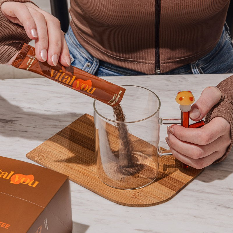 Kickstart your day with our luxurious Mushroom Coffee, crafted from premium Colombian beans and infused with organic mushrooms like Cordyceps and Lion's Mane. Boost immunity and focus with every rich, guilt-free sip. Just 36 calories per cup—pure vitality in your morning mug.